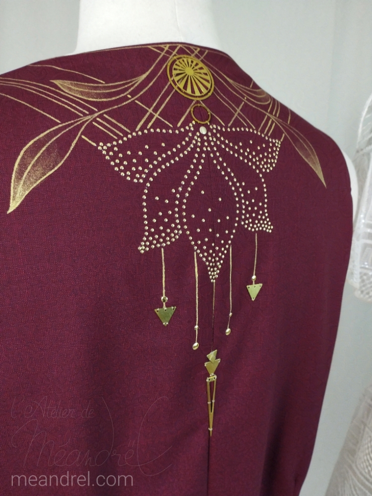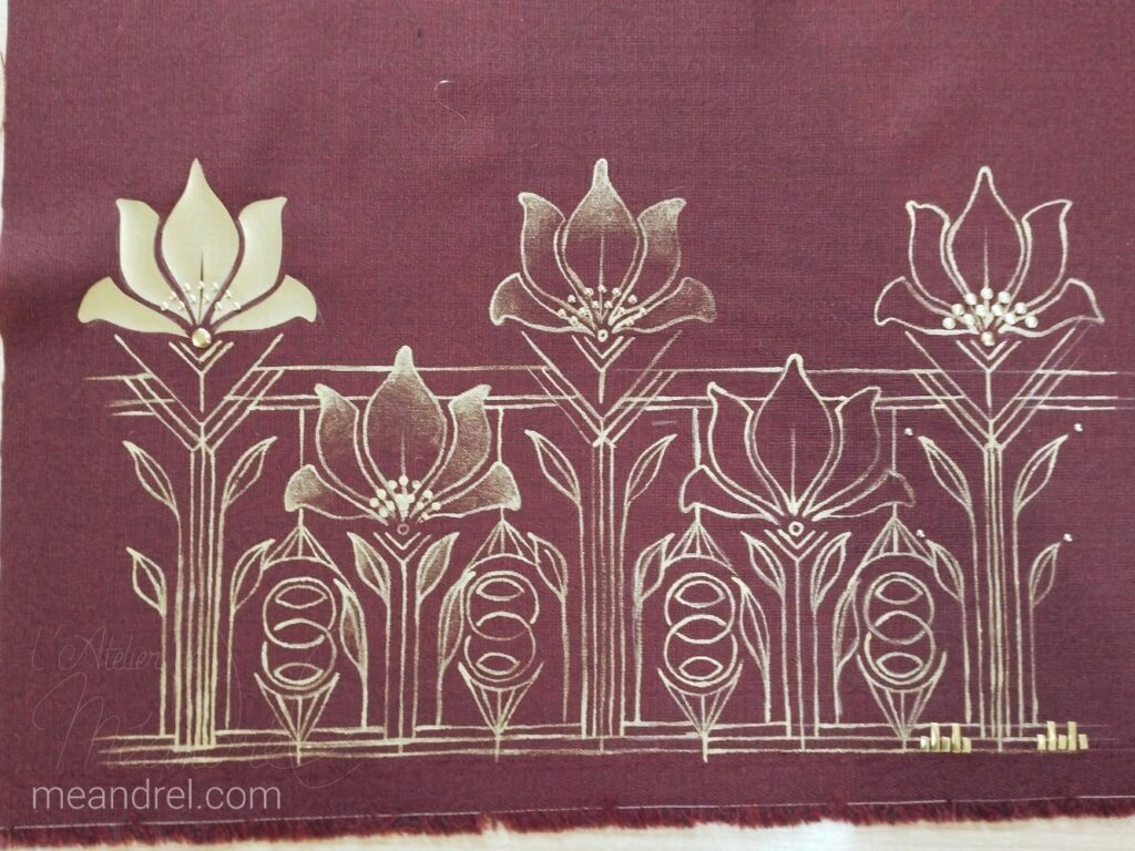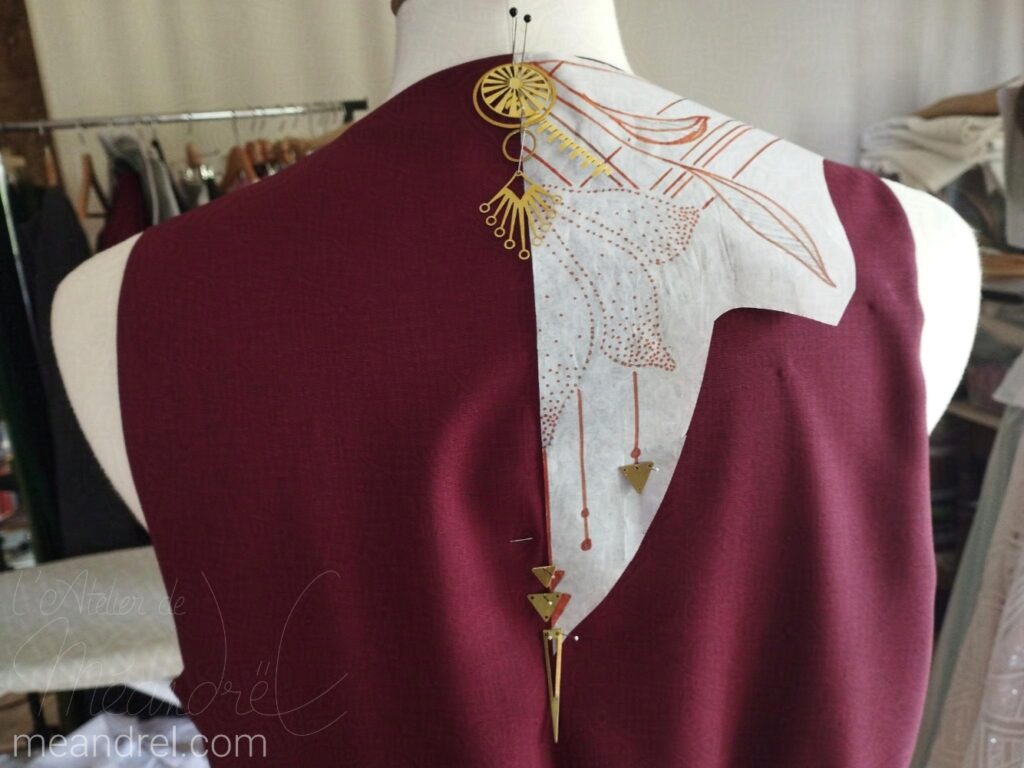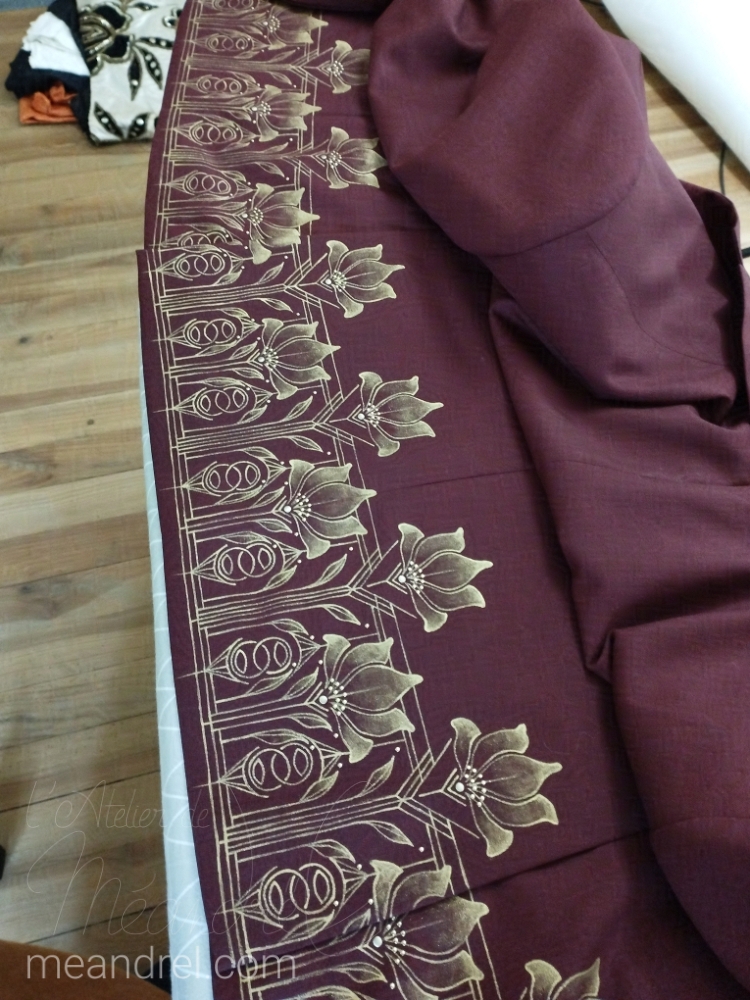– le volume et la forme de la pièce (il faut que les zones à décorer soient accessibles, et parfois que je puisse les mettre à plat, les repasser…)