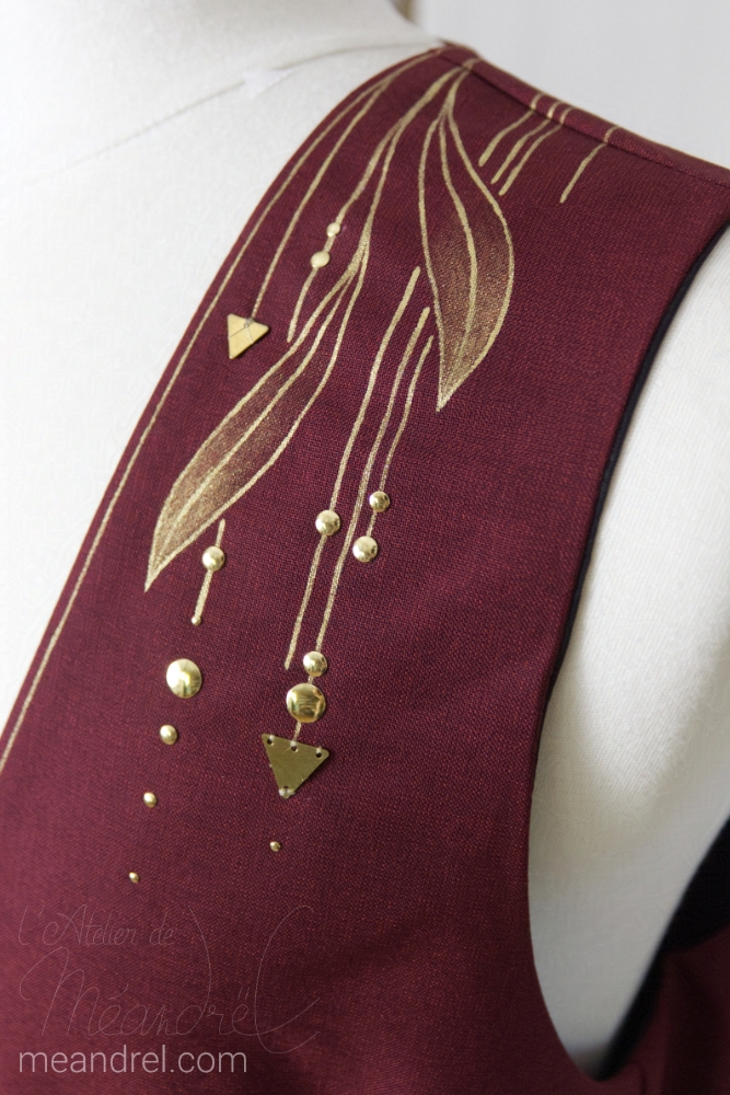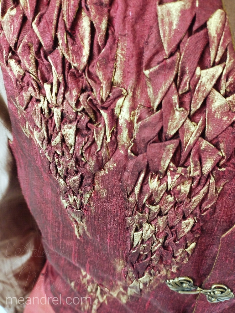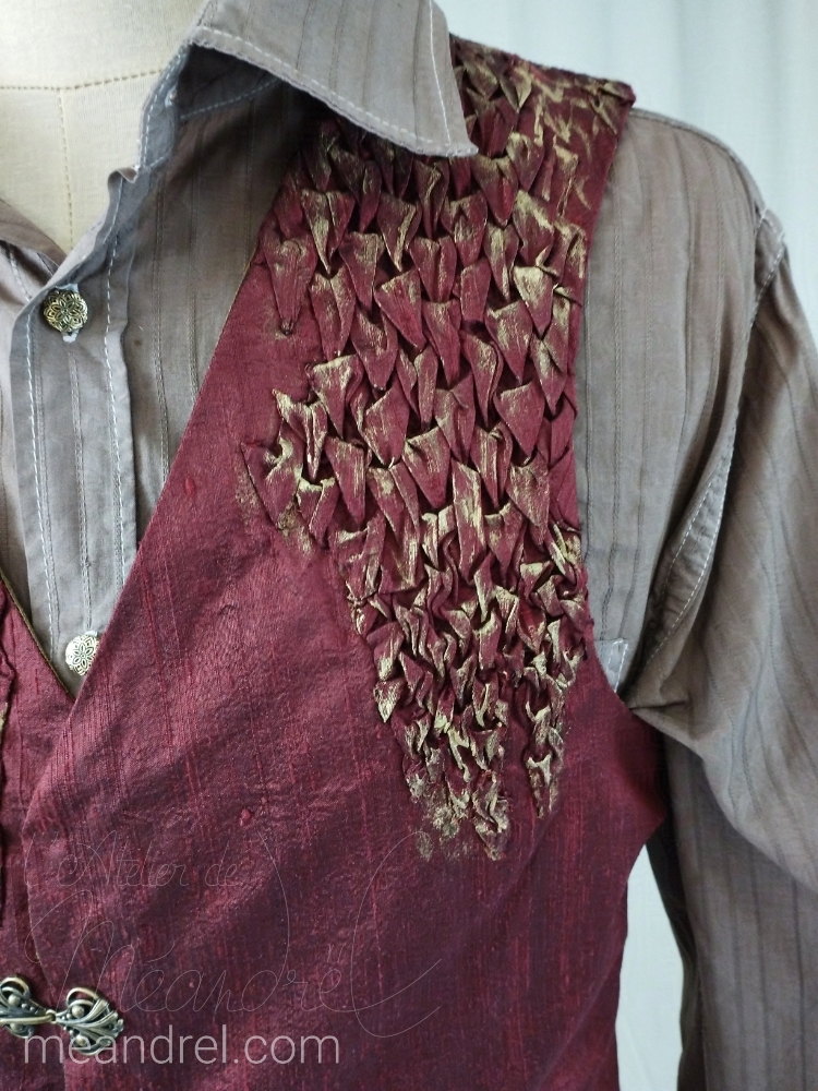 Encore des gilets, le premier avec une inspiration dragonesque : écailles, rubis et or…