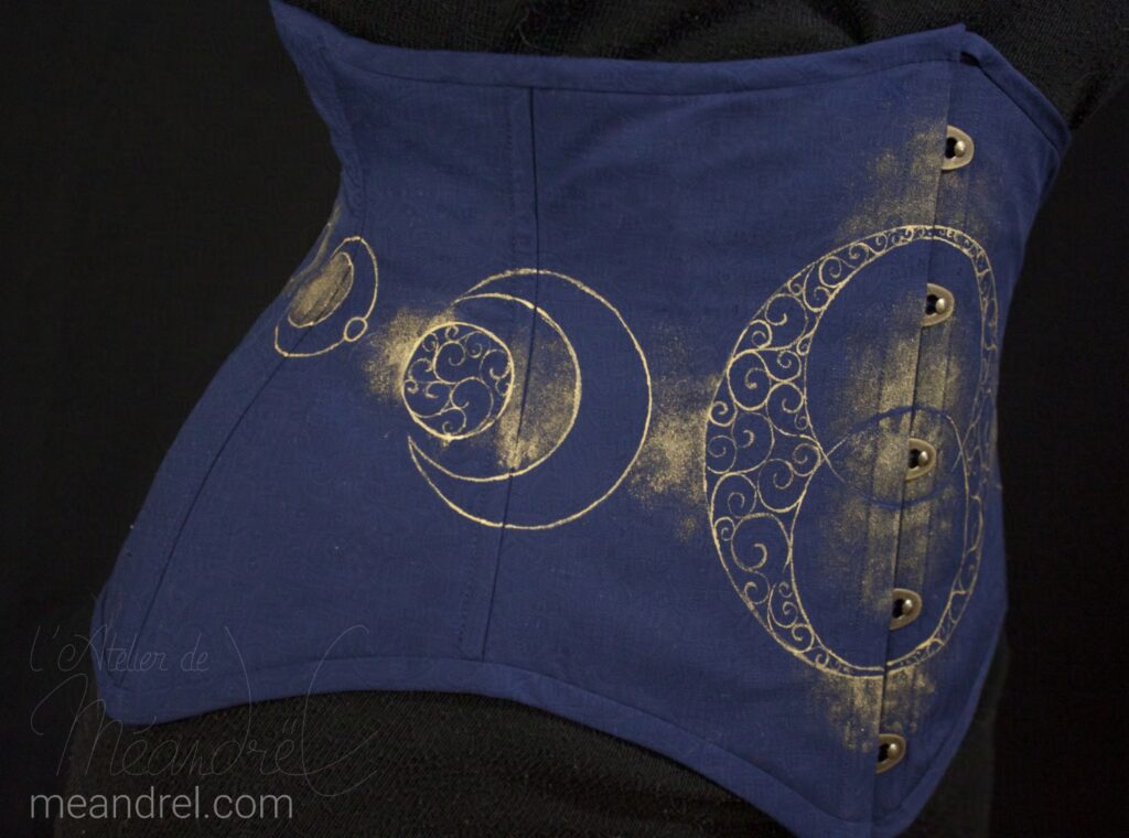 Mais on peut aussi faire d’autres pièces ! Ici, un serre-taille réalisé pendant un de mes ateliers « corseterie », qui m’a été confié pour la partie décoration 🙂